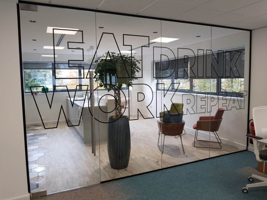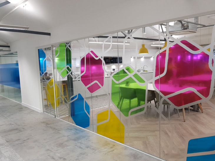 You will probably be familiar with vinyl graphics as they are the most popular way to make glazed walls compliant with health and safety regulations. But don’t think a boring row of manifestation dots any more.