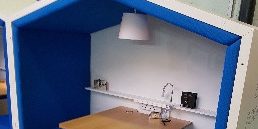 We all still need some sort of privacy in open plan offices and the iconic ‘framery’ pods, shown in the latest colours, were faithfully on show. What an inspirational background below!
